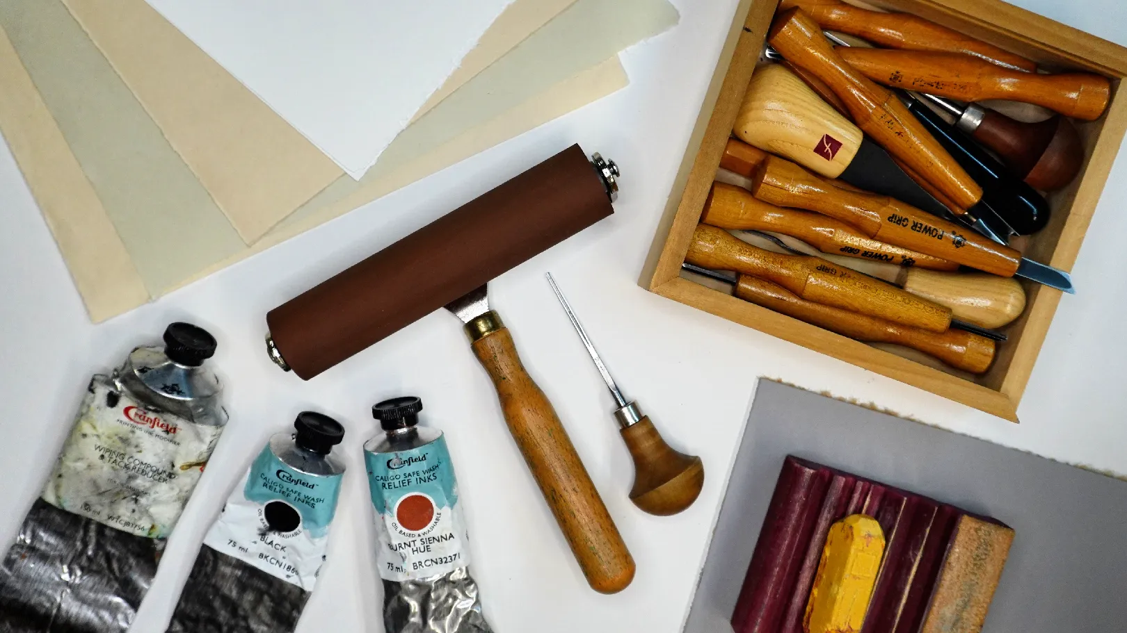 Learn about the essential tools and materials used in linocut - from linoleum and carving tools to inks, brayers, and printing equipment.